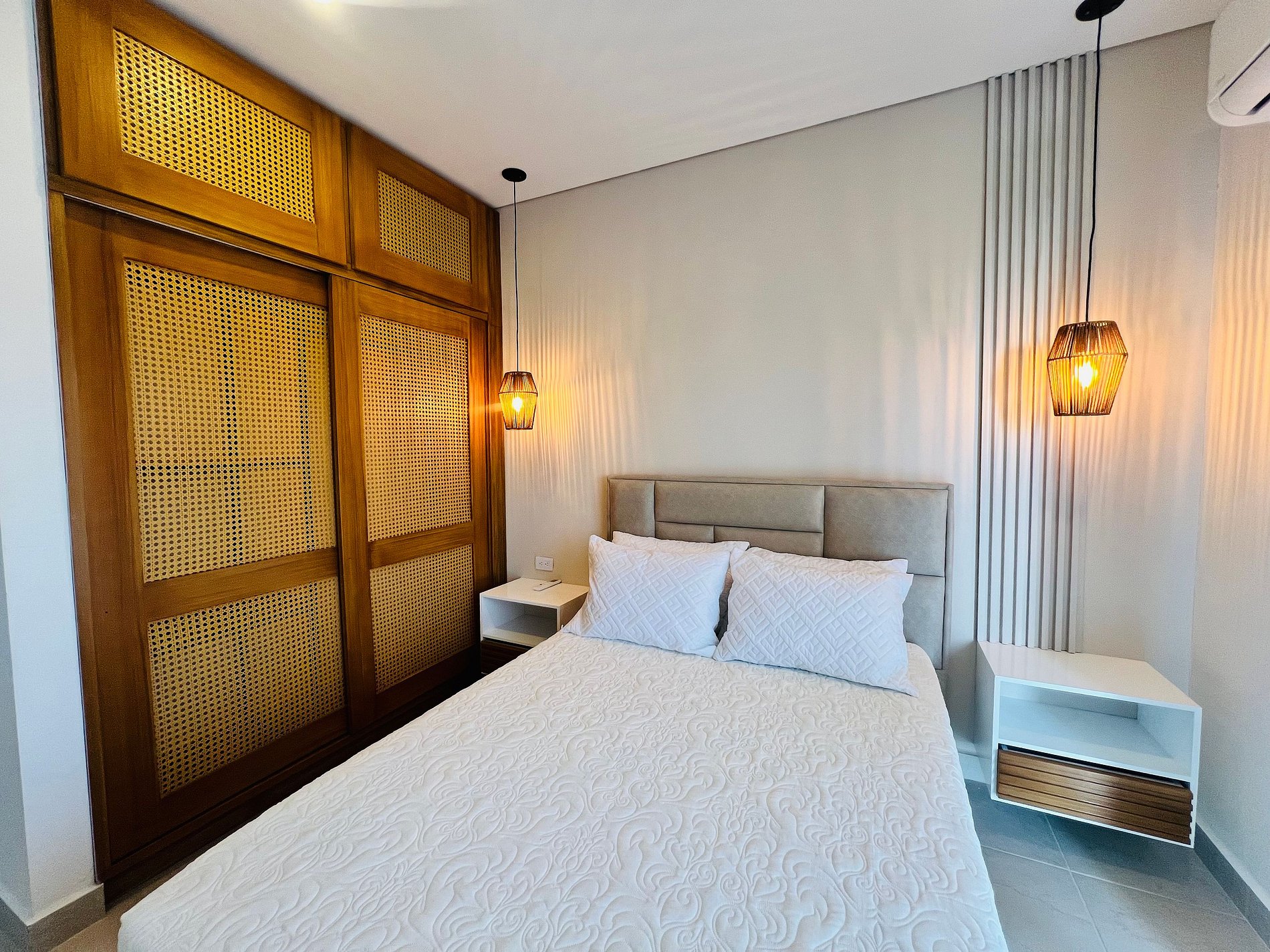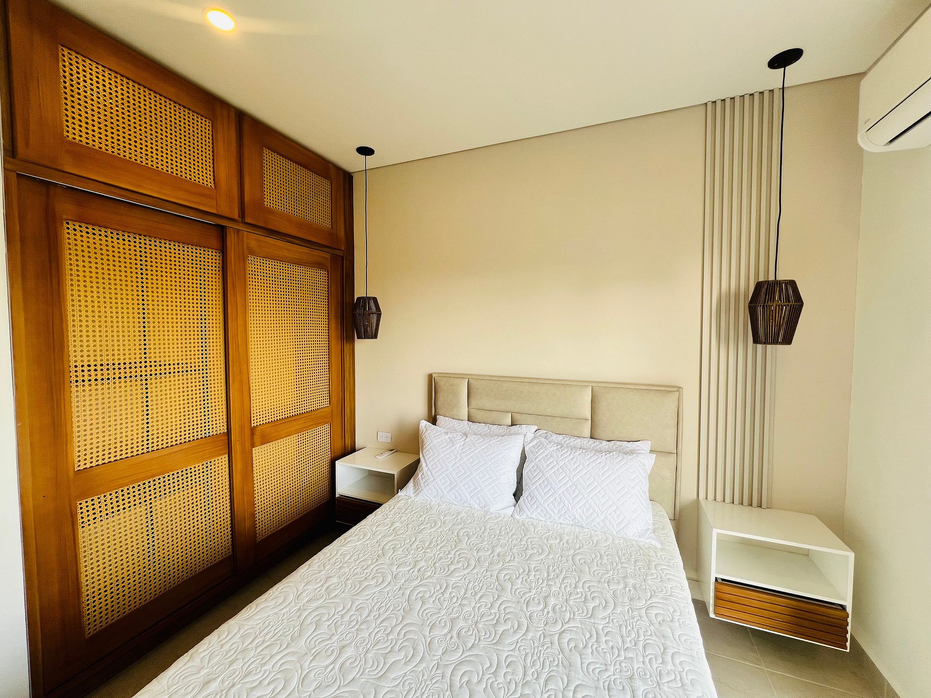 Nuestro apartamento te ofrece las mejores amenidades para unas vacaciones inolvidables. Disfruta de llegada autónoma con tarjeta y relájate con agua caliente en las duchas. Habitaciones de máximo confort: Habitación principal: cama Queen premium, aire acondicionado, persianas, baño privado con ducha y Smart TV de alta definición. Segunda habitación: cama doble premium, con cama auxiliar sencilla tipo nido, aire acondicionado, persianas , balcón con vistas a la reserva, playa y Sierra Nevada,Comparte el baño social con Ducha.